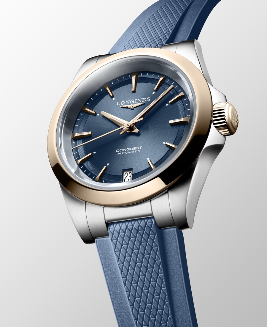 El Longines Conquest representa la quintaesencia de la elegancia deportiva de la marca. Se ha prestado especial atención a la forma del bisel, de la corona con cabujón y de los eslabones de la pulsera. Sutil unión de prestaciones y elegancia, el Longines Conquest posee todas las características técnicas necesarias para satisfacer las expectativas de los deportistas más exigentes. Sobrio y sofisticado a la vez, este modelo no pasa desapercibido en las fiestas más elegantes y en las tribunas de prestigiosas carreras de caballos.